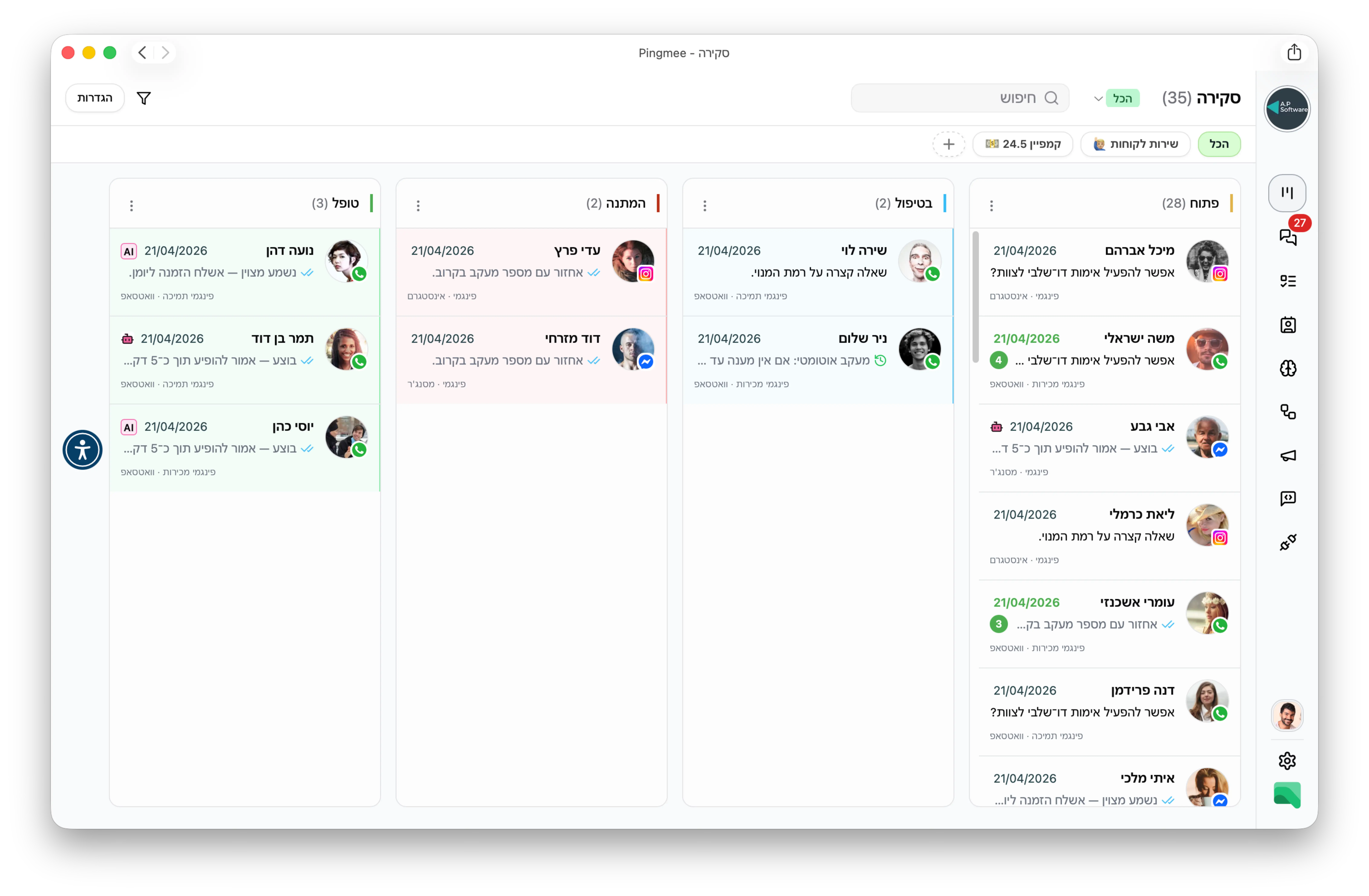 כל השיחות בכל הפלטפורמות במקום אחד, בממשק מתקדם, אפליקציה ותוסף ל-CRM